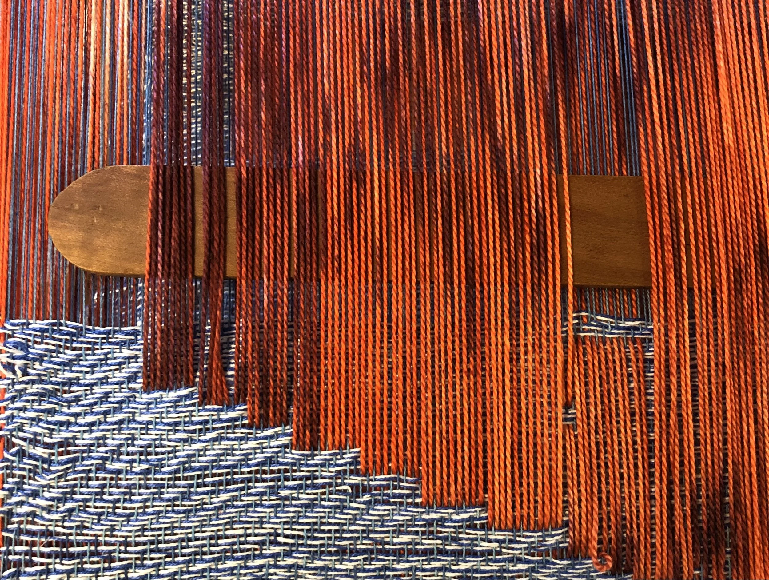 I worship life through a labor of love. My language I’ve discovered, at the loom. I communicate with threads arranged through abstract algorithms assessed from the repetitive code that is weaving. My work is influenced by my background as a painter and I experiment with painted warps and sometimes wefts. I’ve been combining these dyeing strategies with intuitive double cloth pick up. I combine two cloths together as one piece by meticulously picking up threads. This process of combination helps me create my own code of interlacement, built upon by every pass of thread. The two-sidedness of the cloth mimics the experience of holding opposites. When I weave I experience being just as focused and intentional as I am disassociated and entranced. The tension between these simultaneous states of being creates a full experience where the repetitive nature of weaving gives way to personal prayer and reflection. Therefore these handwoven cloths uncover words and images hidden within my mind. Through incorporating these personal elements, I aim to create a vulnerable space for reflection. This is my act of love with all intent to worship life.